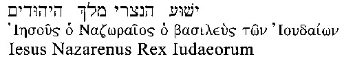 One possible appearance of the titilum, using a best guess Hebrew, the Greek of John 19:19 and the Latin of the Vulgate would be:
