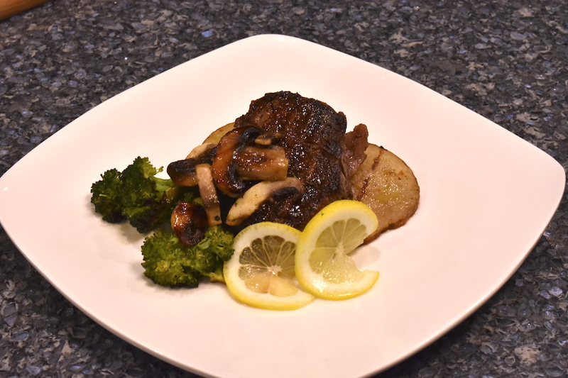 - Add the mushrooms and broccoli to the pan of beef and potatoes. Put in the oven to cook with the rest of the menu items.