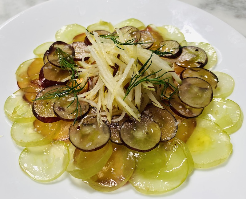 A delicious side of fruit carpaccio.
