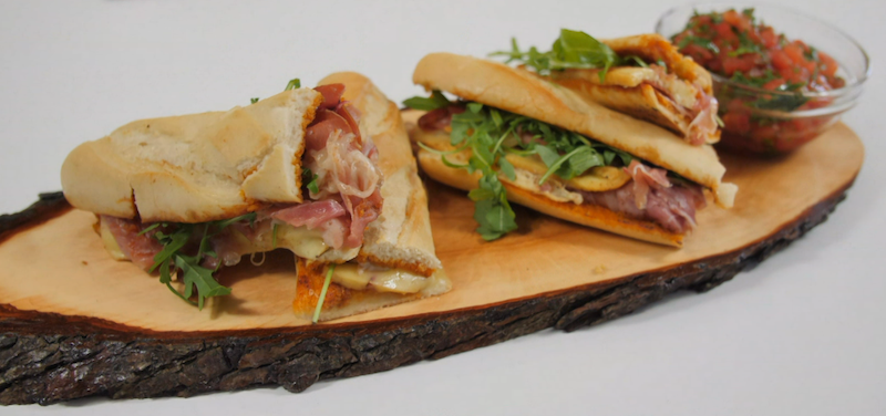- Remove the bocadillos from the pan, open the sandwich, and top off with fresh arugula & a spoonful of the combined parsley, tomato, and olive oil.