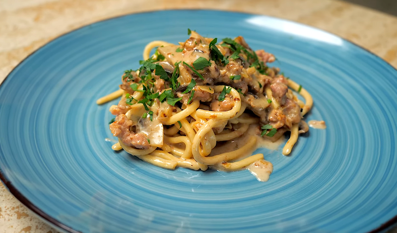 4. Return the mushroom, onion, and garlic mixture to the pan with the sausage.